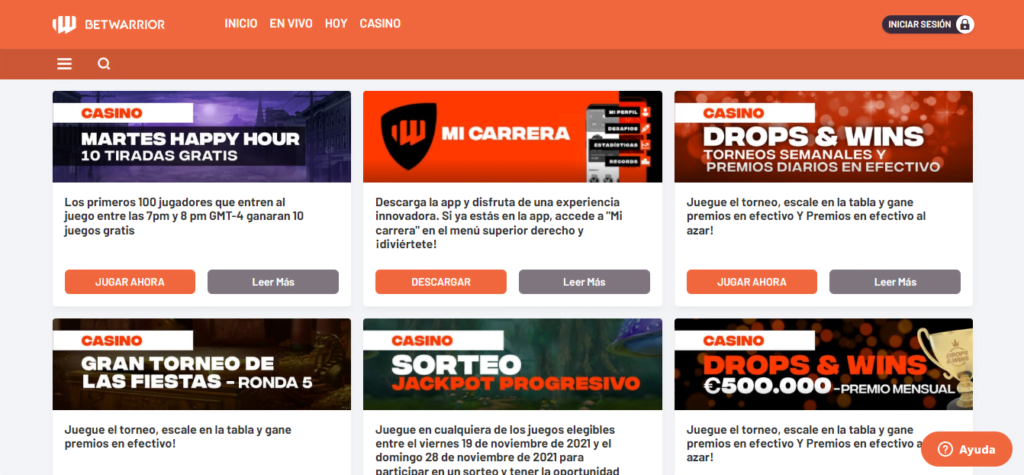 ¡Por supuesto! Betwarrior cuenta con promociones para usuarios habituales de Casino, que van desde torneos de slots hasta giros gratis y potenciadores de premios.