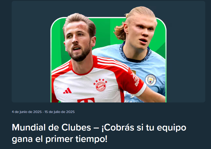 - Aplica para apuestas simples, previas al partido, en el mercado 1X2 de la Copa Mundial de Clubes de la FIFA durante la vigencia de la promoción.