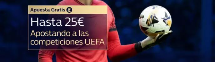 La casa de apuestas William Hill ha lanzado una promoción en la que llévate hasta 25€ en apuestas gratis apostando a las competiciones UEFA (Champions y Europa League). Además, para disfrutar de la promoción debes registrarte o estar registrado en William Hill apuestas deportivas. En el caso de no estarlo, aprovecha el bono de bienvenida de hasta 200€ que ofrece William Hill.