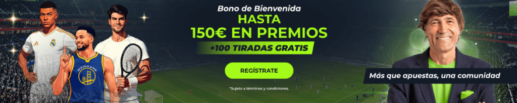 - Pide el bono de bienvenida de hasta 150€ en premios con tus tres primeros depósitos.